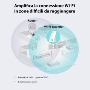 TP-Link TL-WA850RE Ripetitore Wireless Wifi Extender. TL-WA850RE Velocità di trasmissione fino a 300 Mbps con frequenza 2.4 Ghz, ideale per streaming video ed online gaming. L’installazione a muro rende sufficiente la presenza di una presa elettrica per l’utilizzo del prodotto. È sufficiente la pressione del tasto WPS sull’access point / router sorgente seguita dalla pressione del tasto Range Extender per mettere in funzione il prodotto. La porta LAN è utilizzabile per la connessione di dispositivi Ethernet, trasformando il prodotto in un adattatore: Indicato per SmartTV e Decoder. LED indicatore mostra il livello del segnale proveniente dall’access point / router sorgente ricevuto dal dispositivo, consentendo di determinare facilmente il miglior posizionamento del prodotto. La gestione profili consente inoltre la portabilità del dispositivo, che ricorderà le reti wireless a cui è stato precedentemente associato. Con Tether App, l’applicazione di TP-Link, potrai configurare e gestire sia il router che gli extender in modo semplice e intuitivo direttamente dal tuo smartphone – per Android e iOS.